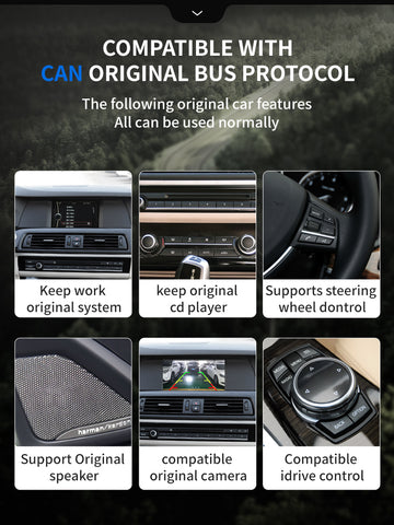 7,Supports original radio functions, i-Drive, steering wheel control, all vehicle displays and settings etc.